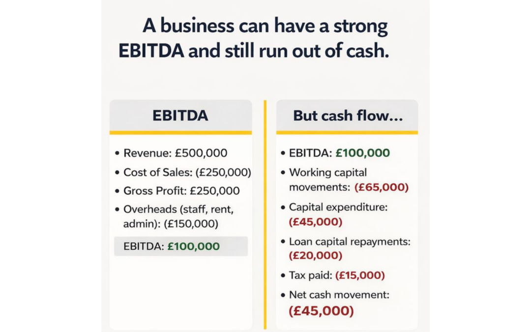 The reality is that EBITDA can paint a dangerously incomplete picture. I’ve seen businesses with impressive EBITDA figures that were, in fact, haemorrhaging cash in the background. Yet it’s cash, not accounting profit, is what keeps the lights on in business.